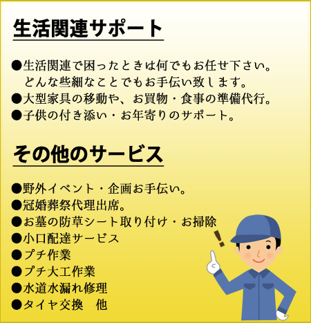 | 生活関連サポート | 1 | 時間 | ¥5,500 | 1人 |