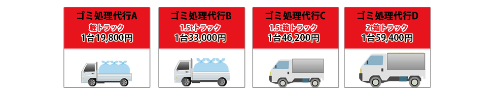 | ゴミ処理代行A | 1 | 台 | ¥19,800 | 軽トラック廃棄料含む |